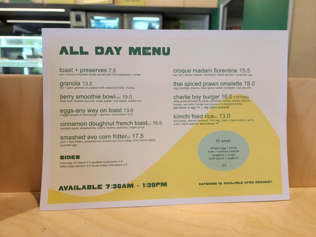 The menu at Charlie Boy Coffee offers a variety of options suitable for breakfast, light meals, and casual dining occasions. It features a selection of thoughtfully prepared café-style dishes alongside a range of coffee and beverage choices.