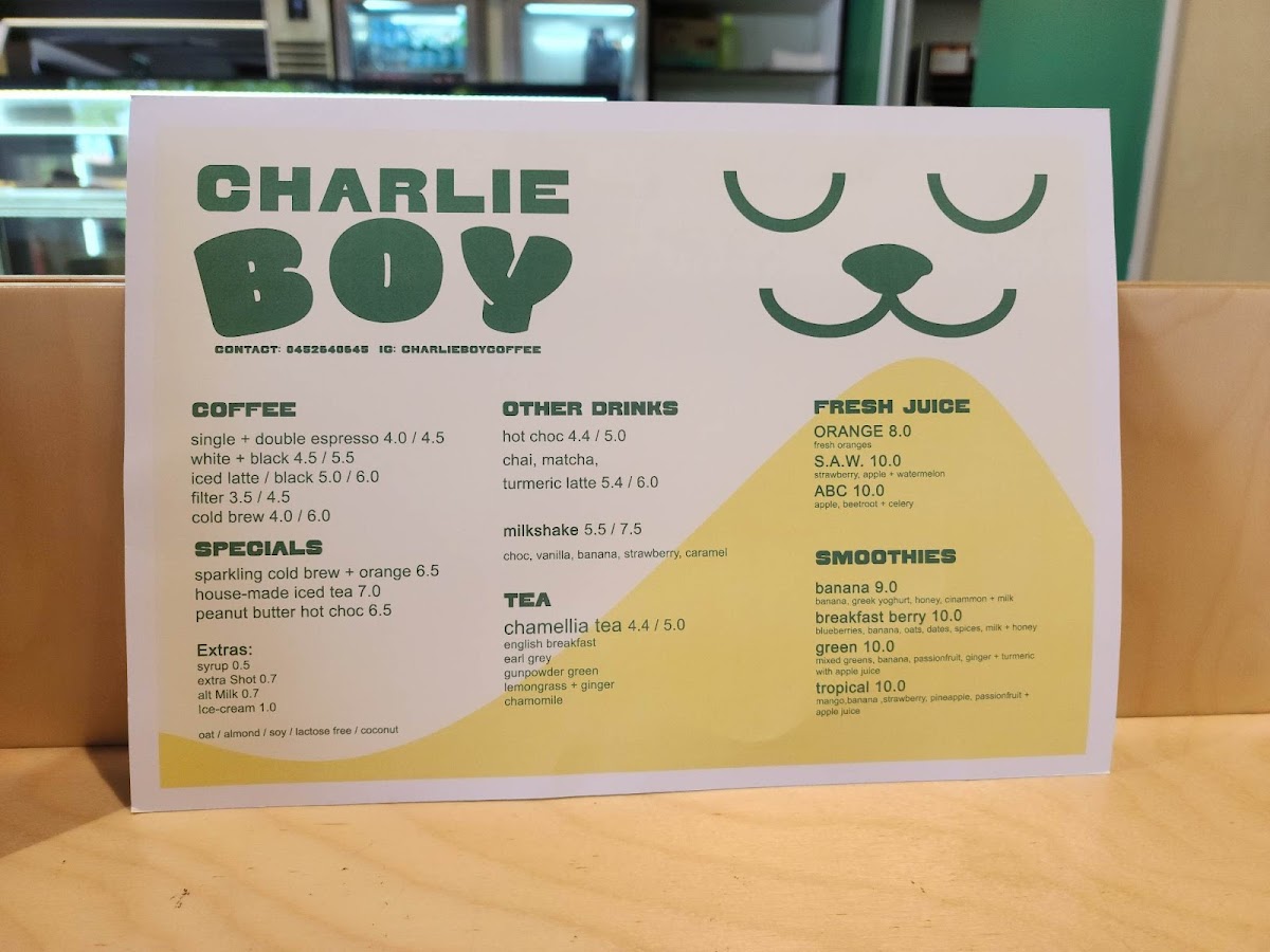 Charlie Boy Coffee Menu